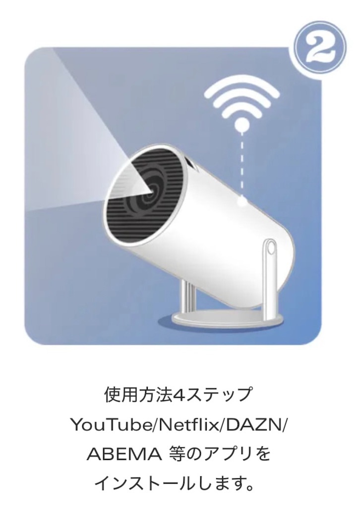 つまり Fire Stickなどの外部機器を使わず、プロジェクター単体で動画アプリを使うことができます。